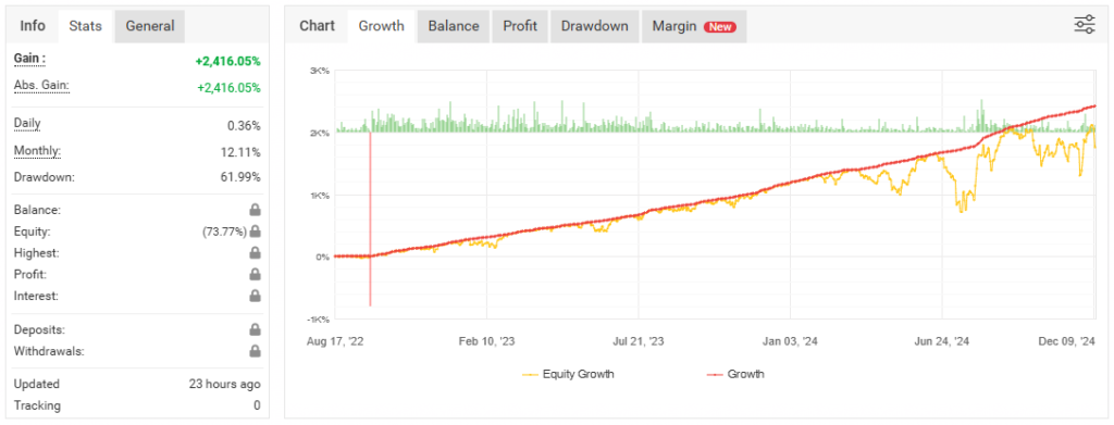 下記リンクから2022年8月から現在までのMyFxBookの実際の運用成績をご確認いただけます。
